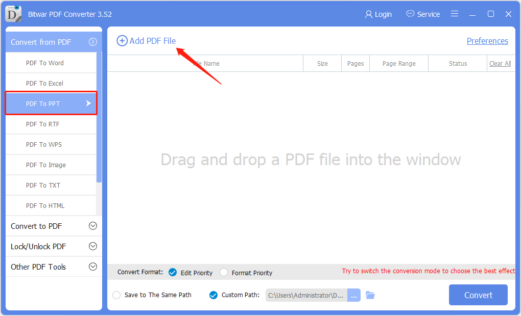 Bitwar PDF Converter Software provides many types of PDF conversion tools such as PDF to Image, PDF to Word, PDF to Excel, and many more. Presentation file which is PPT is one of the most commonly used file formats. So follow the tutorial below as it will show users how to convert PDF to PPT by using the PDF tool in the software!